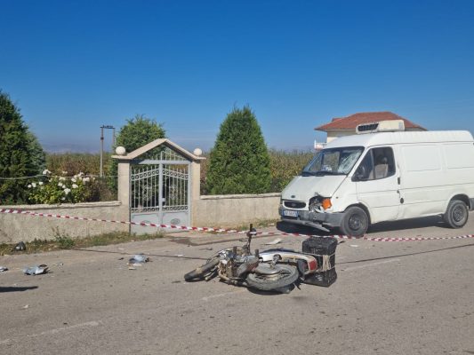 Sipas burimeve një furgon mallrash ësggrë përplasur me një motomjet, dhe i plagosur rëndë ka mbetur drejtuesi i motomjetit.