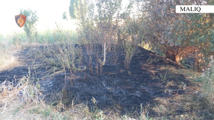 “Rreth orës 17:30, të datës 13.08.2024, sapo janë njoftuar për një rast zjarrvënieje, në aksin rrugor “Sheqeras-Maliq”, specialistët për Hetimin e Krimeve të Komisariatit të Policisë Maliq kanë shkuar në vendngjarje. Në bashkëpunim me shërbimet zjarrfikëse është bërë e mundur shuarja e zjarrit, ndërsa si rezultat i veprimeve të shpejta hetimore është identifikuar dhe arrestuar autori i dyshuar i zjarrvënies, shtetasi Xh. H., 64 vjeç, banues në fshatin Orman-Pojan”, njofton policia.
