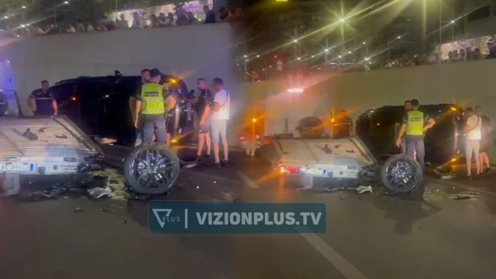 Në pamjet e siguruara nga gazetari i Vizion Plus, Esido Barkaj shihet një makinë tip ‘Range Rover’, me targa angleze e cila dyshohet se për shkak të shpejtësisë ka humbur kontrollin e mjetit dhe ka përfunduar e kthyer përmbys në anën e murit rrethues të rrugës.