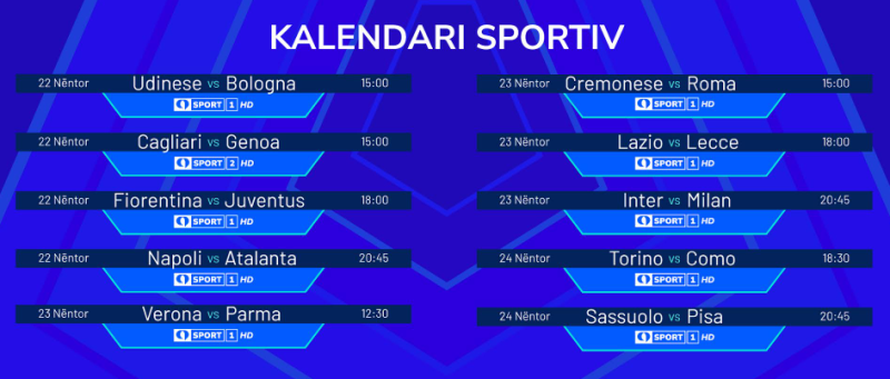 Por kjo fundjavë është e mbushur me emocione dhe “Il Calcio” do të dhurojë spektakël marramendës jo vetëm me “Derbi della Madonnina”. Të shtunën, Juventusi udhëton drejt Firenzes për t’u përballur me Fiorentinën në një fazë tejet të vështirë në kampionat, kurse Napoli kampion pret në “Diego Armando Maradona” Atalantën e Berat Gjimshitit, që kërkon të rikthehet sërish te shkëlqimi.